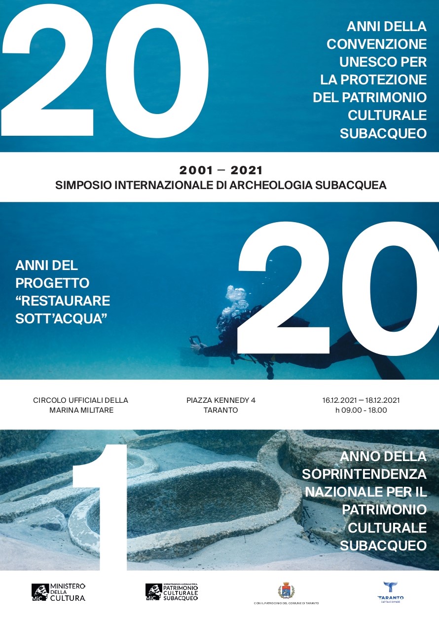 Dal 16 al 18 dicembre 2021 si svolgerà a Taranto “20-20-1 Simposio Internazionale di Archeologia Subacquea“ una conferenza internazionale organizzata dalla Soprintendenza Nazionale per il Patrimonio Culturale Subacqueo.